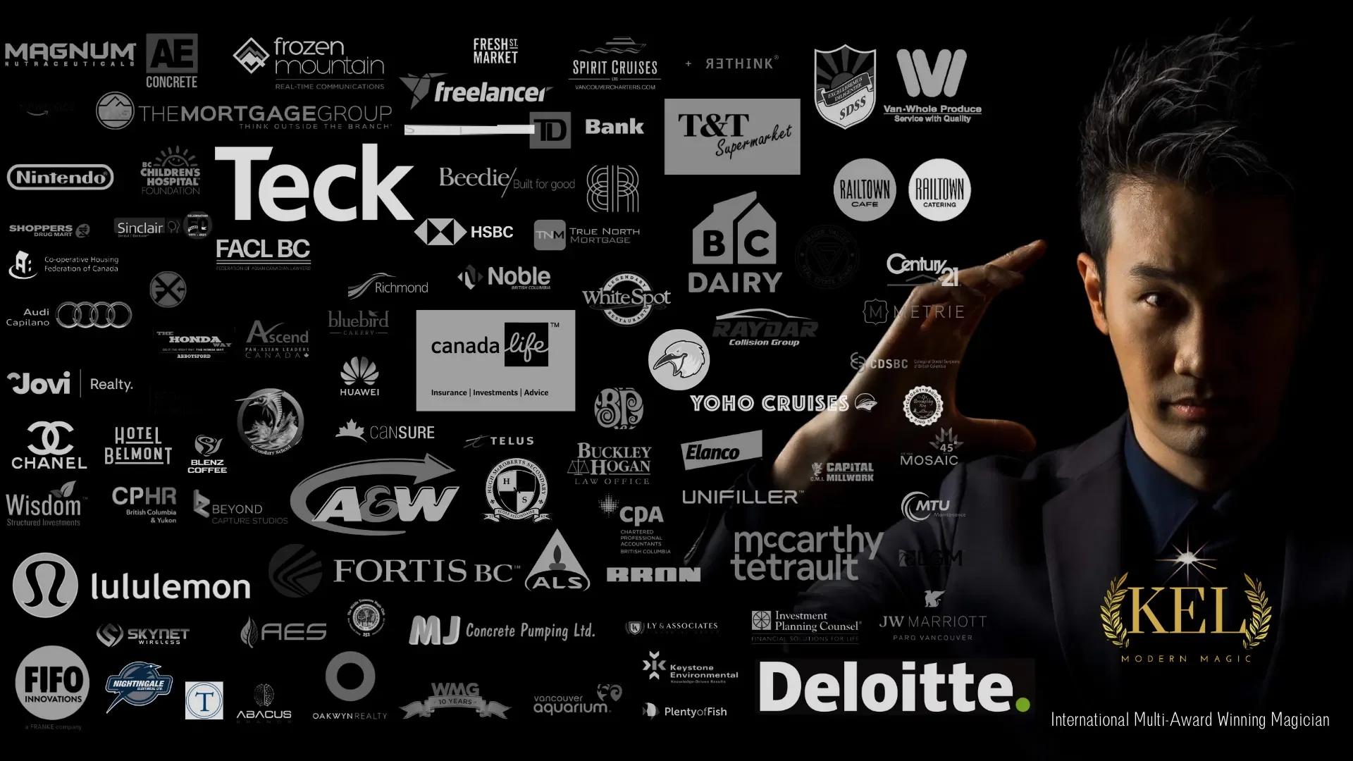 Kel's been making magic happen for hundreds of corporate functions in Canada, entertaining audiences at events from coast to coast. With plenty of experience in the Canadian corporate entertainment scene, he's the go-to guy for companies looking for an event that will really be remembered.