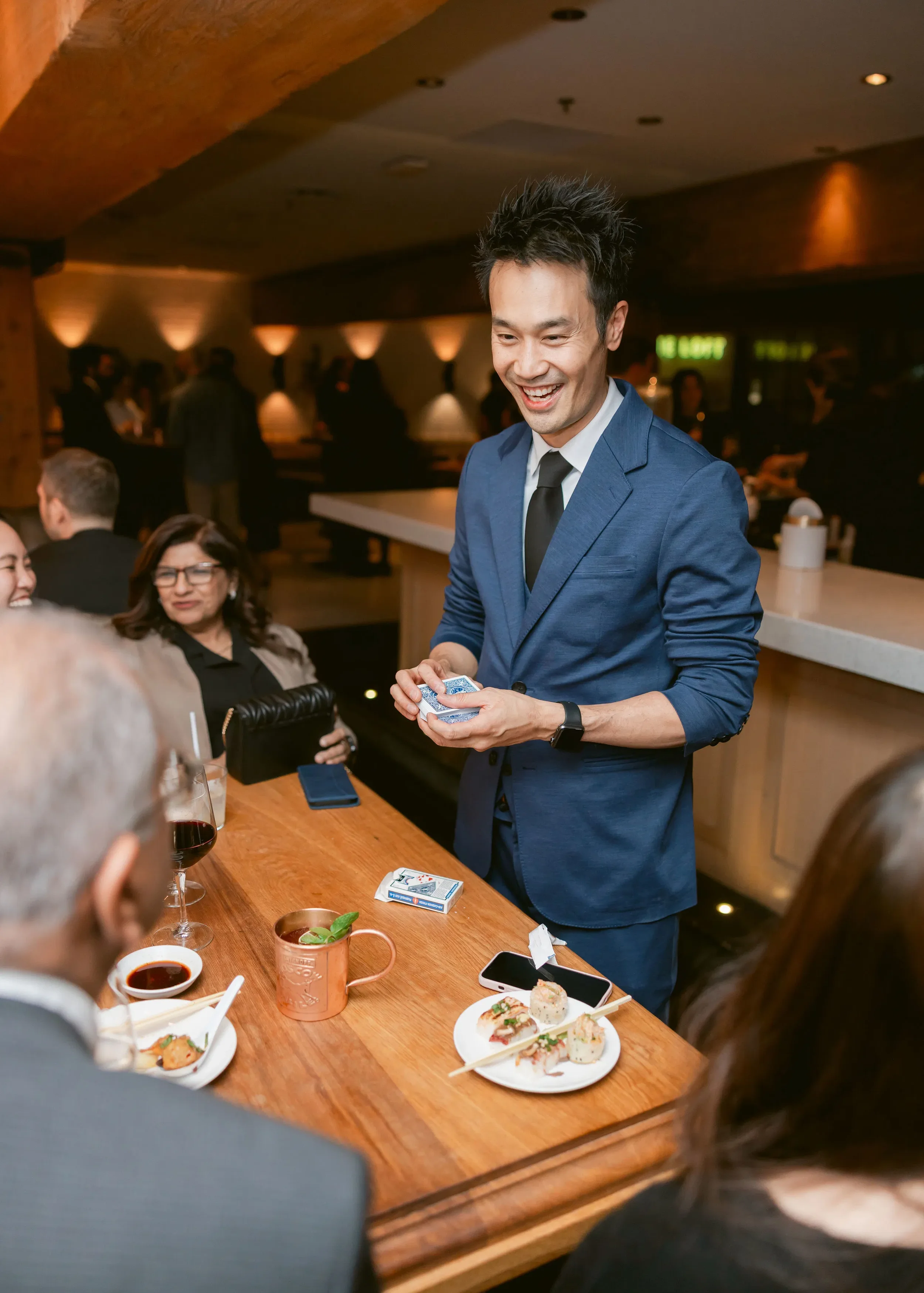 Interactive close-up magic at a Aria Banquet Convention Centre corporate networking reception, designed for executive cocktail hours and conference socials.